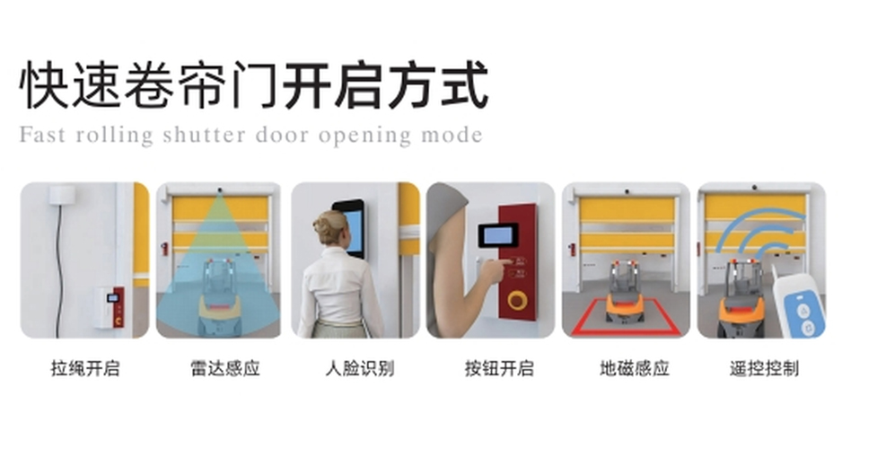 每秒0.5-1.5M的开启速度(可调),门框下部安装红外线光电保护开关一对门体下面停留人与物体时,门体不下落,确保安全。