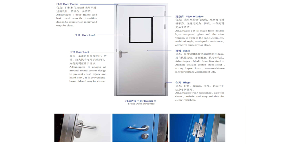 净化门适用于净化车间,医院,药厂,食品厂等有洁净要求的场合。门体模具一体成型,无缝隙,耐腐蚀。洁净门芯材采用优质阻燃纸蜂窝或铝蜂窝,以保证洁净门的强度和平整度。净化门是一种专门设计用于洁净室和无尘环境的门。它具有多种特性和优点,使其成为各种行业及科研领域中不可或缺的设备。