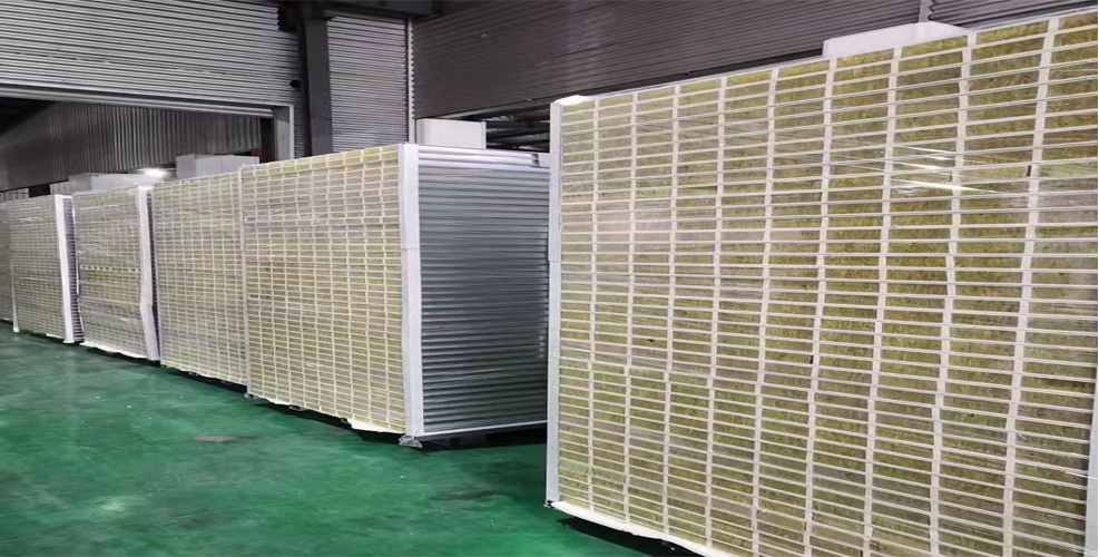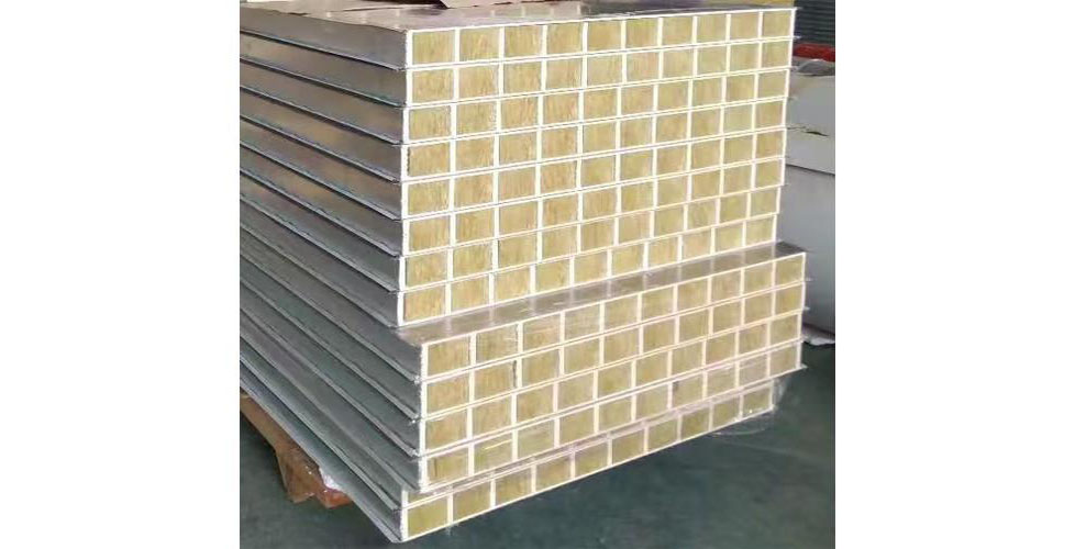 以彩色涂层钢板为面材,用5mm玻镁板为上下芯层,岩棉为内芯层,通过加压、加热等工序制造而成,密封性能好,防火等级高。采用