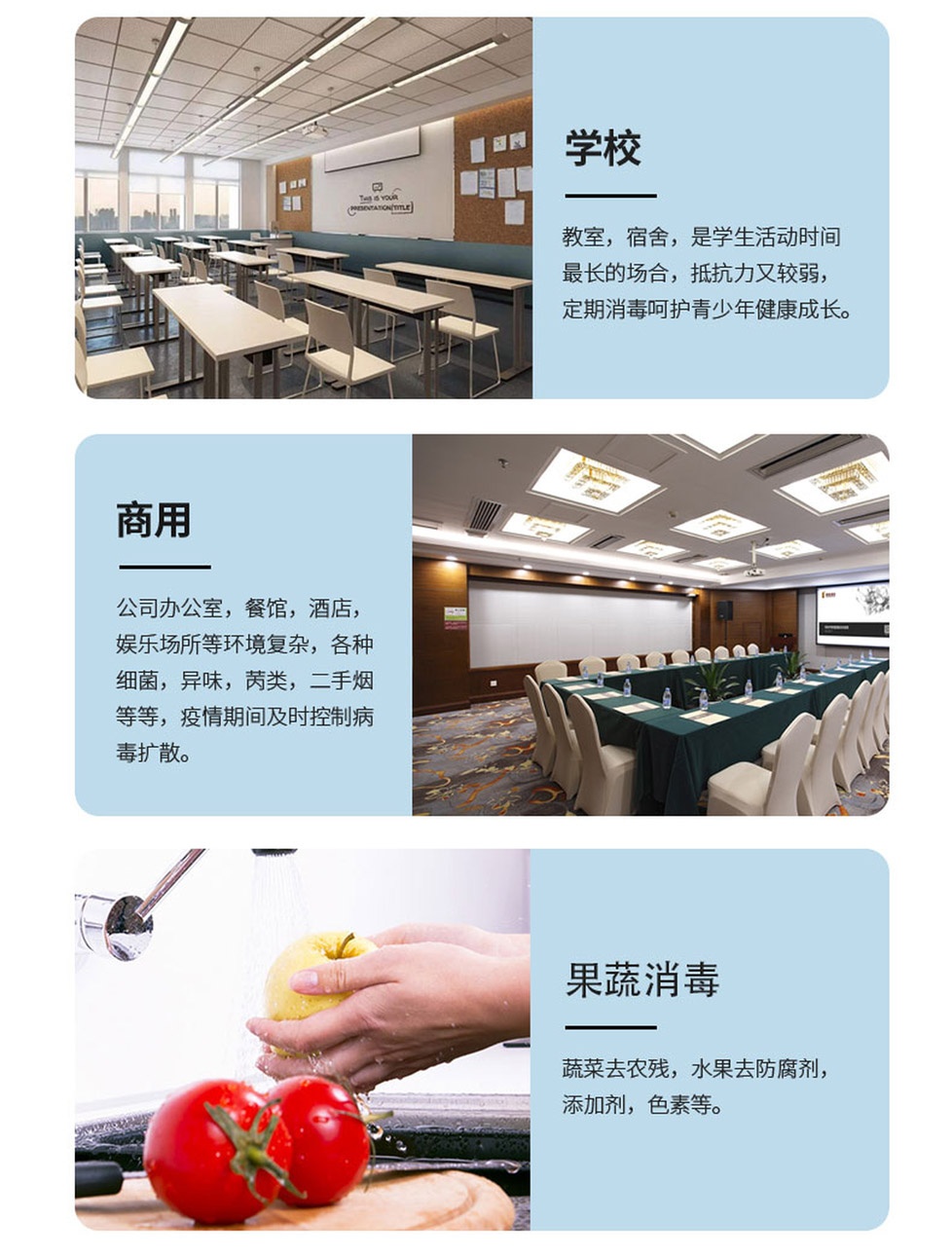 主要用于工作室与洁净室消毒灭菌。臭氧发生系统:引进日本沿面次高压(3500V)等离子体产生臭氧技术,呈面工作状态,臭氧发生量大且稳定。因本身体质和工艺的特点,使用臭氧发生器在工作时对环境、温度与湿度有很强的适应性,可长时间连续工作,从而真实的实现了用户对其高性能、长寿命的严格要求。