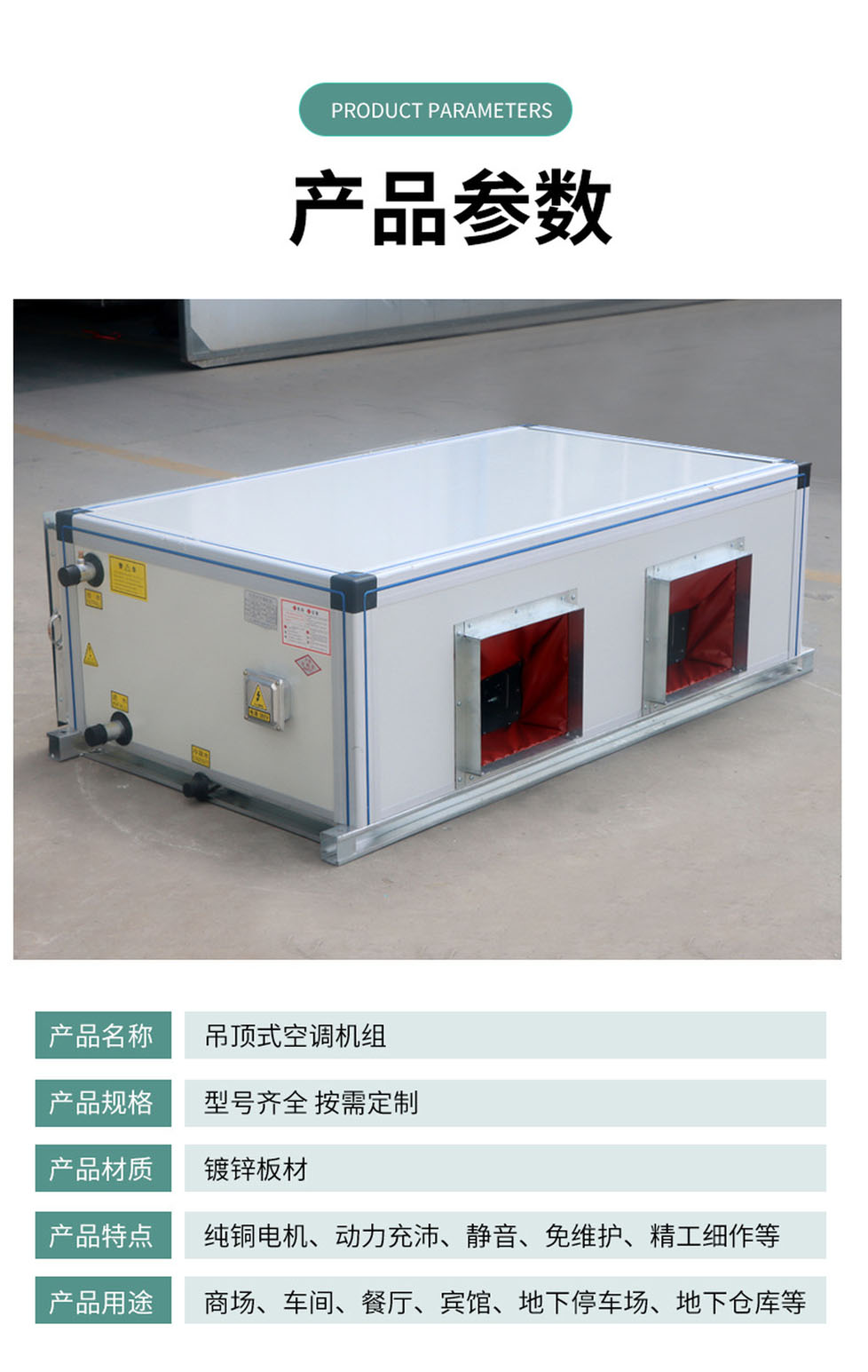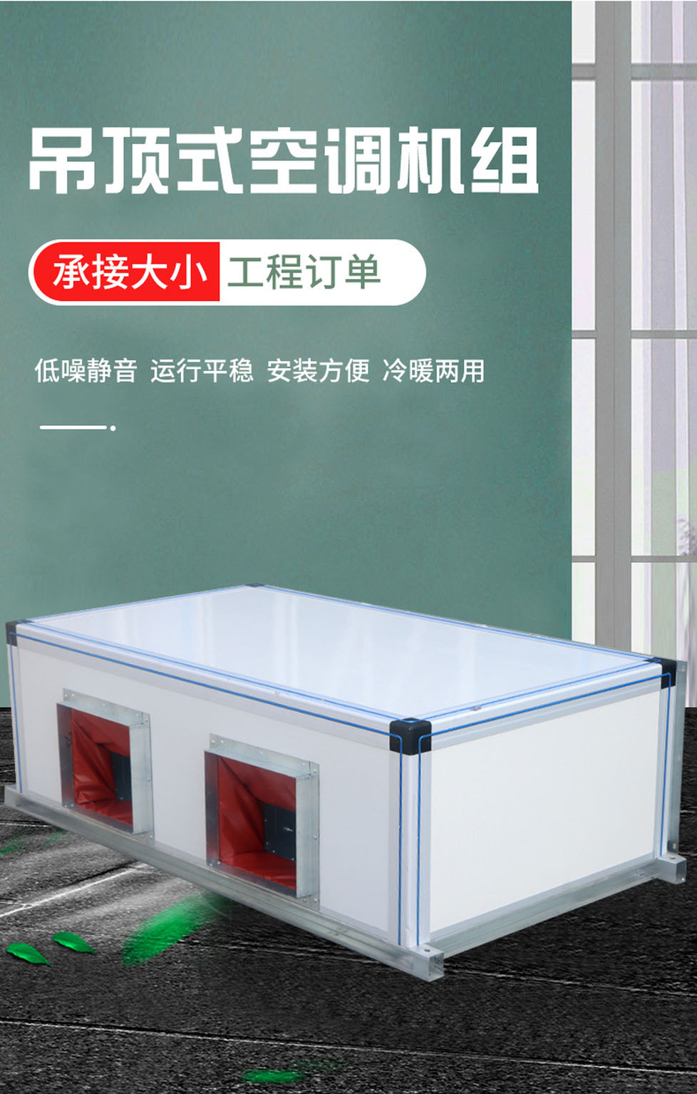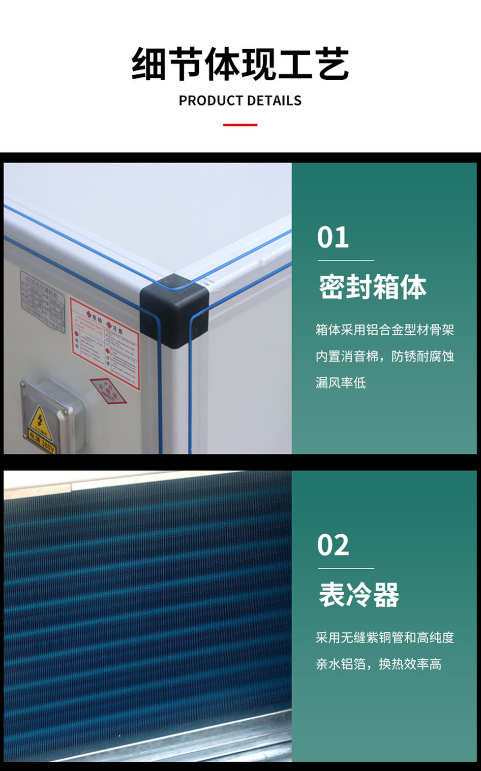 ●机组采用部件出厂,现场组合装配,骨架选用优质板材冷弯制作,为槽型框架装配式结构,板面为内填聚苯乙烯泡沫塑料或聚氨酯的优质轻质隔热夹芯板,面板与骨架有结合部位均胶以自粘密封条。整体结构新颖独特,重量轻,密封保温好,装卸、运输方便,施工周期短。