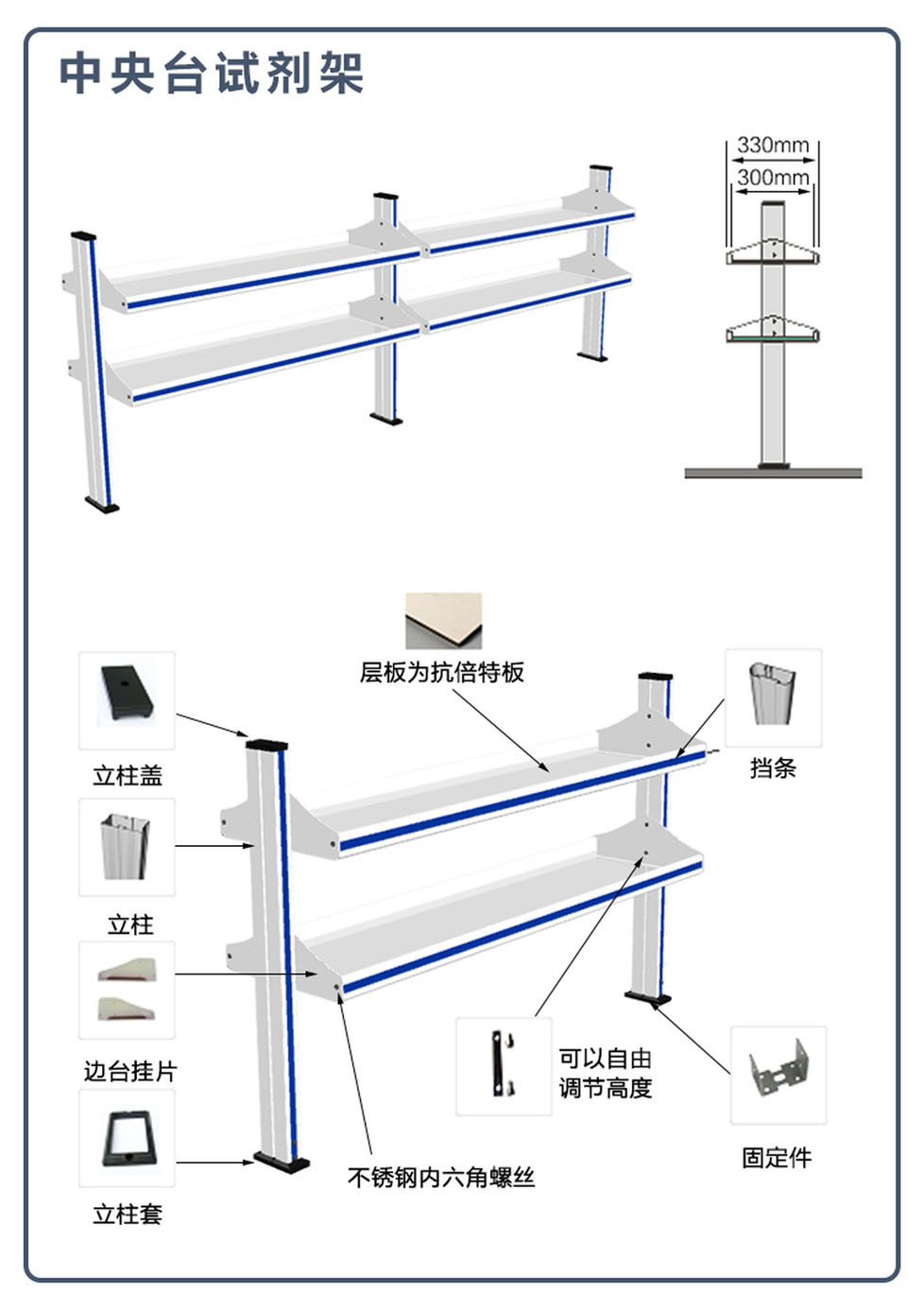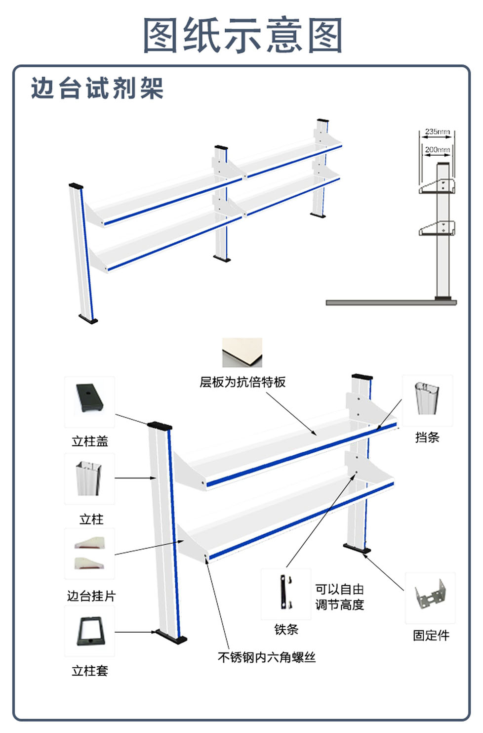 实验室台专用试剂架 耐酸碱、耐高温、承重强