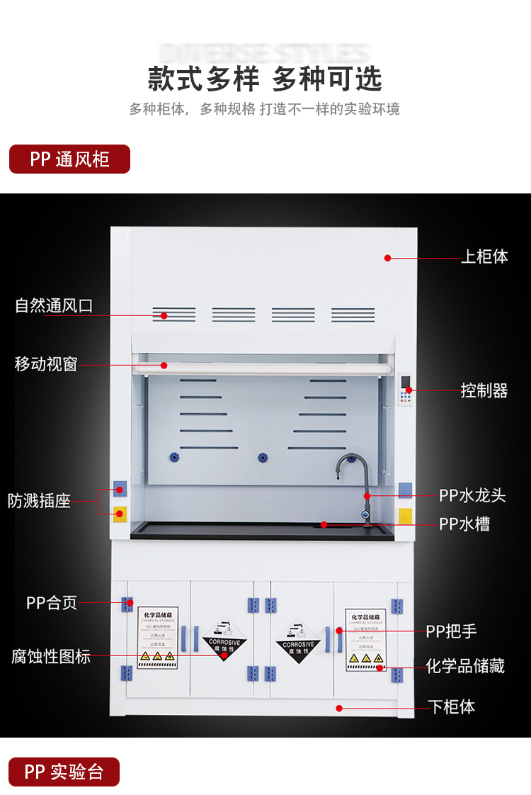 PP通风柜 实验室不锈钢通风橱桌面排风柜化验室抽风柜化学试验室