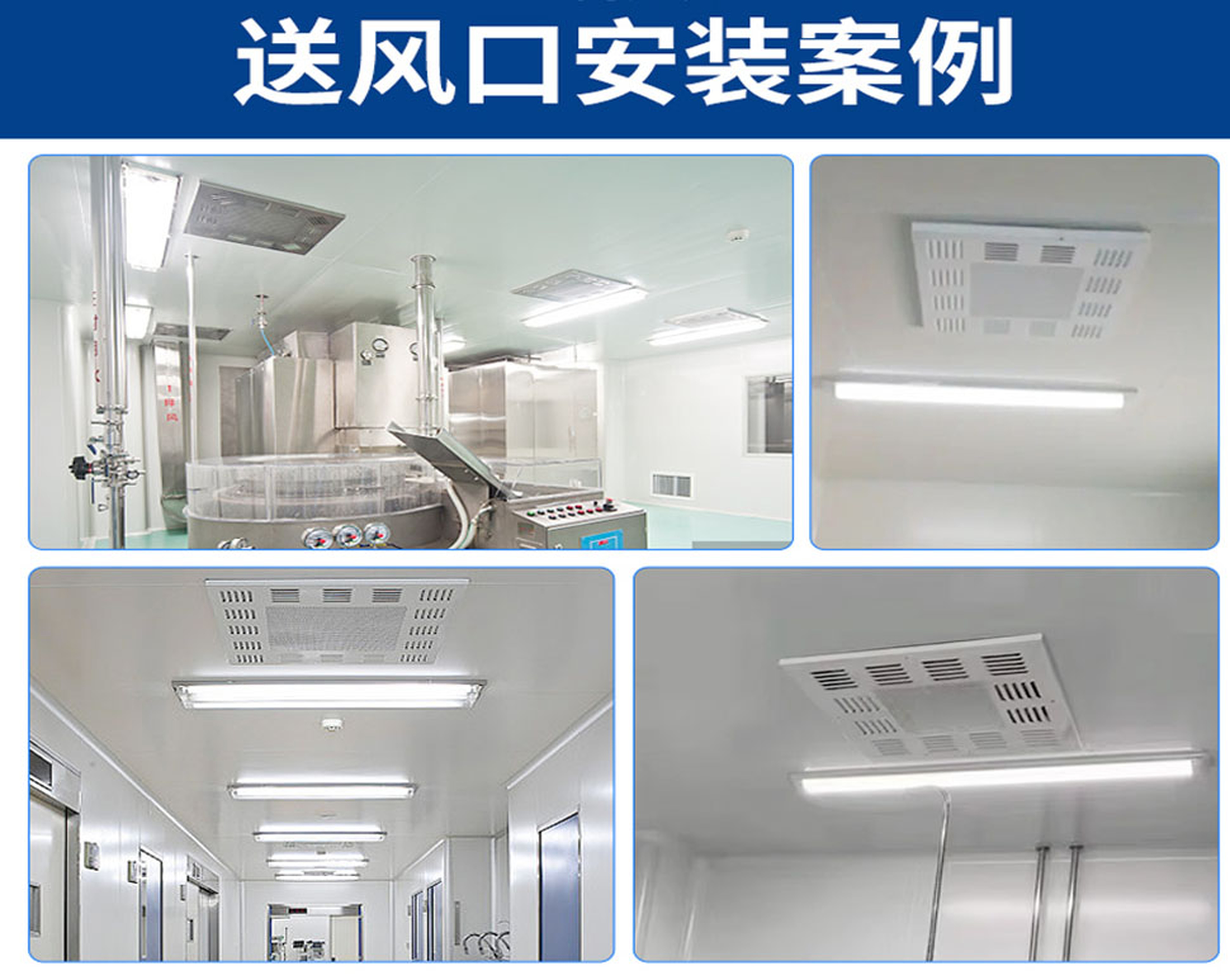 第二,安装前需对高效送风口产品本身进行彻底清理,同时对洁净室开展全方位清扫工作,净化空调系统内的灰尘要全面清除,直至达到洁净标准,吊顶及夹层内部也需同步清洁;净化空调系统还需连续试运转 12 小时以上,之后再进行一次清洁处理。